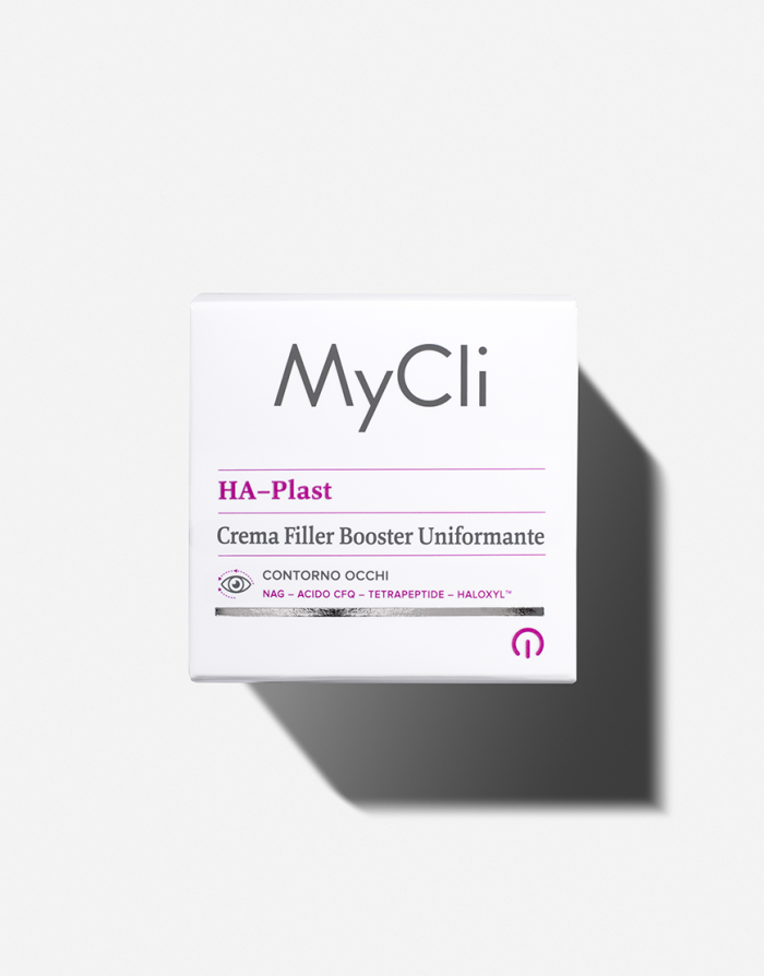 MyCli HA–Plast Even Tone Filler Booster Cream is a corrective treatment with filling effect designed for the eye contour. Its formula stimulates the synthesis of endogenous Hyaluronic Acid to give the periocular skin support, structure, and density. It also corrects the appearance of eyelids. The eye area looks more radiant, refreshed and firmer. Integrated micromolecular technology formulated with NAG, CFQ Acid, Crisine, anti-gravity tetrapeptides, phytoceramides, tocotrienols, and Hydroxyproline.