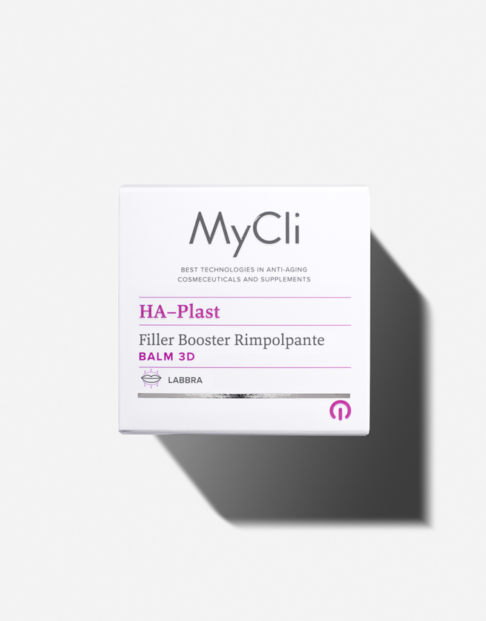 MyCli HA–Plast Plumping Filler Booster is a lipo-filler with volumizing effect designed for the lips. Its formula stimulates the synthesis of endogenous Hyaluronic Acid, providing a progressive increase in lip plumpness over time. It also boosts the synthesis of skin proteins and lipids to nourish, deliver a fuller and plumper appearance and improve the definition. Integrated micromolecular technology formulated with microencapsulated spheres of Hyaluronic Acid, Hydroxyproline, Phytoceramides, and brown seaweed (Undaria Pinnatifida) lipids.